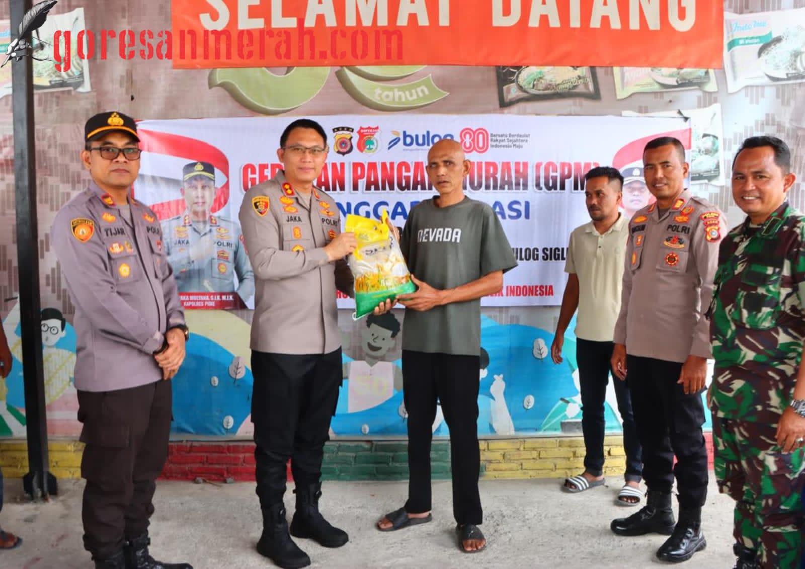 GORESANMERAH.COM | PIDIE – Koperasi Polres Pidie bersama Perum Bulog Pidie menggelar Gerakan Pangan Murah (GPM) di Pasar Kecamatan Simpang Tiga Kabupaten Pidie, Selasa (2/9/2025).