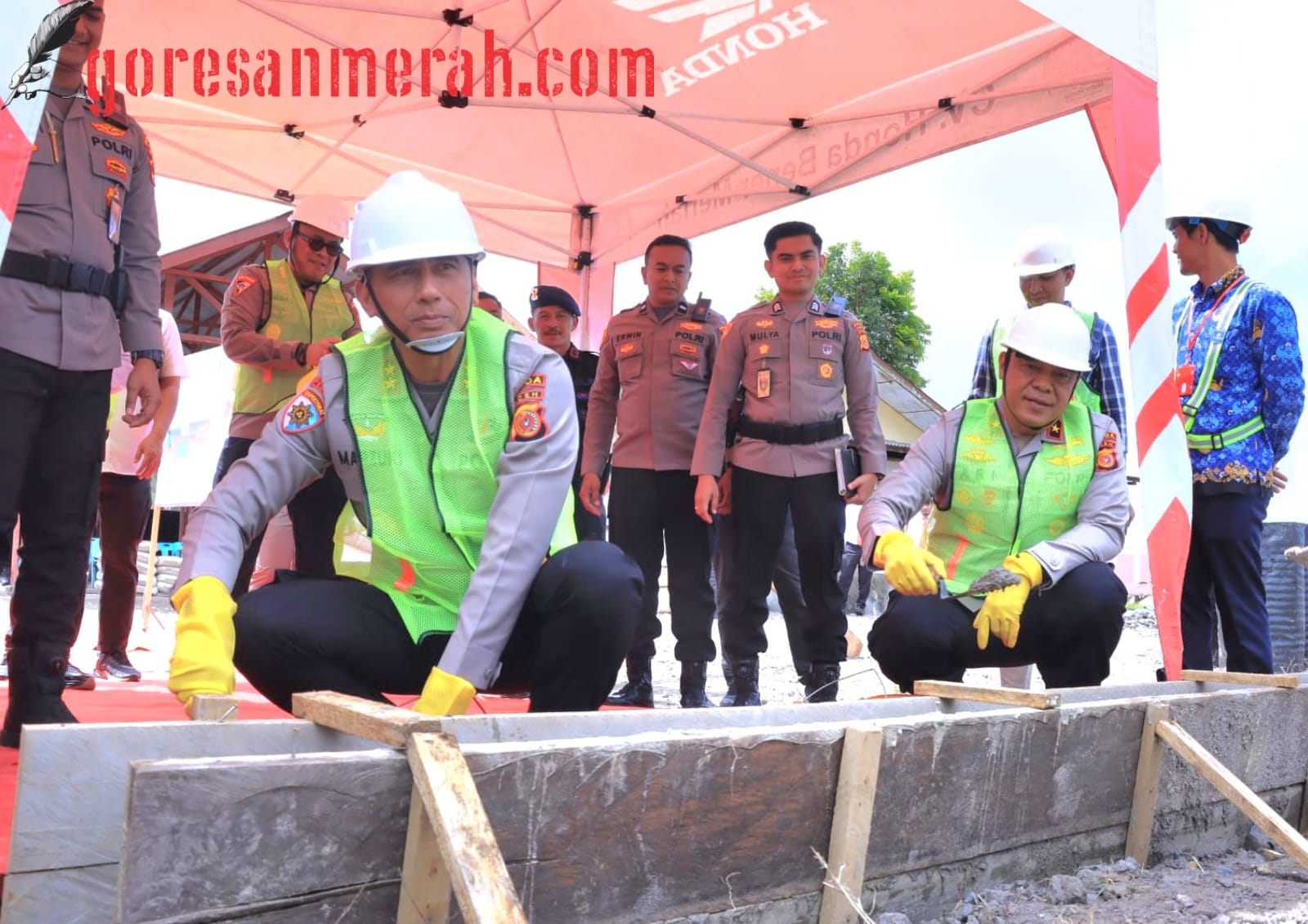 GORESANMERAH.COM | BENER MERIAH – Kapolda Aceh Irjen Pol. Drs. Marzuki Ali Basyah meletakkan batu...