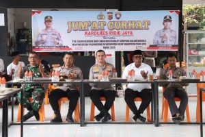 GORESANMERAH.COM | PIDIE JAYA – Dalam rangka menyukseskan Pemilihan Keuchik Langsung (Pilchiksung) Tahun 2025, Kapolres Pidie Jaya AKBP Ahmad Faisal Pasaribu, S.H., S.I.K., M.H., menggelar kegiatan Jumat Curhat bersama Panitia Pemilihan Keuchik (P2K), para calon keuchik, serta tokoh masyarakat Kecamatan Ulim, Jumat (10/10/2025).