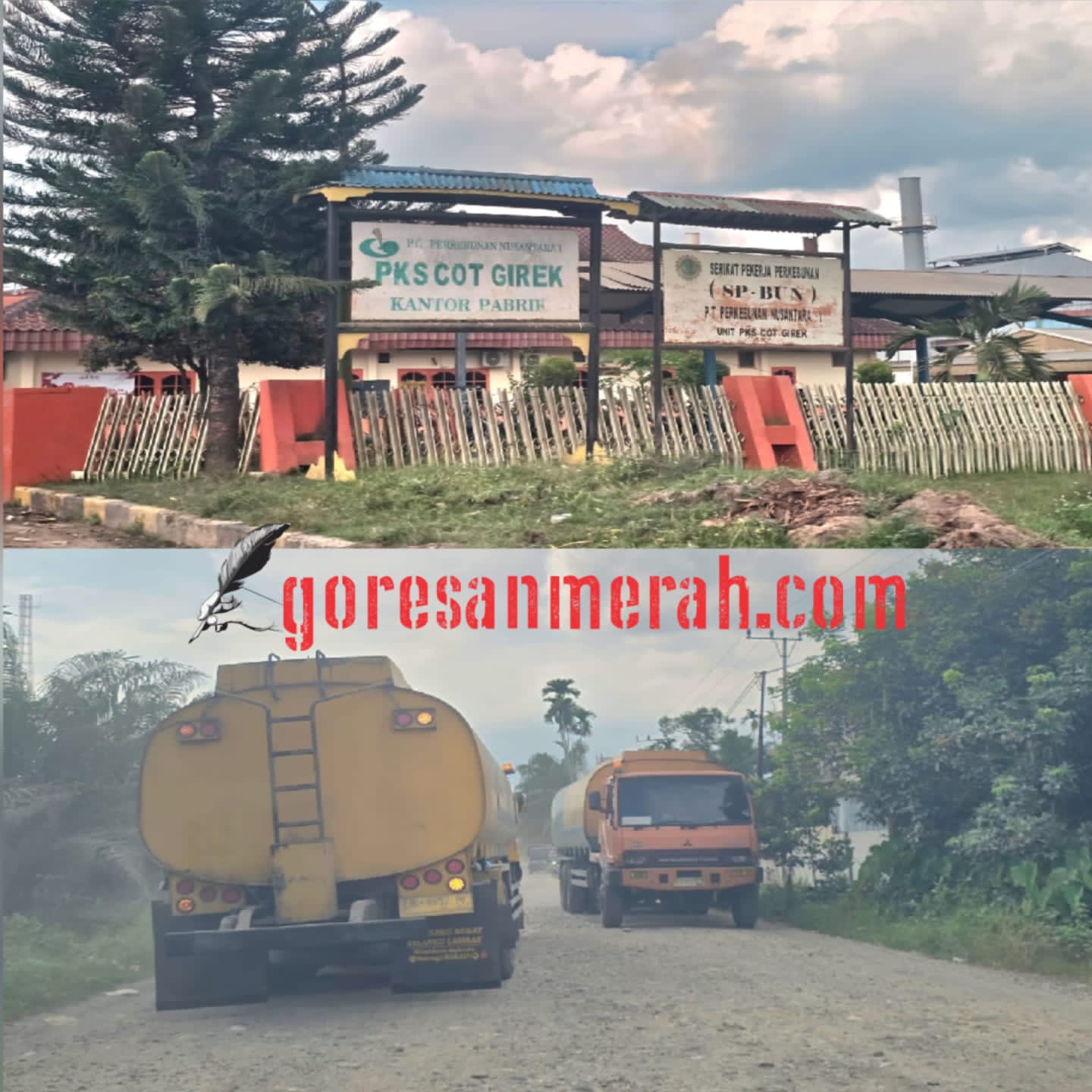 GORESANMERAH.COM | ACEH UTARA – Upaya sejumlah wartawan online untuk meminta konfirmasi dari Manager Pabrik Kelapa Sawit (PKS) Cot Girek, Basri, terkait keluhan warga mengenai kerusakan jalan akibat mobil pengangkut Crude Palm Oil (CPO) perusahaan tersebut, menemui kendala. Basri disebut-sebut sulit ditemui, meski pihak media sudah berulang kali mendatangi kantor perusahaan.