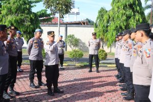 GORESANMERAH.COM | ACEH UTARA – Cegah judi online, Kepala Kepolisian Resor Aceh Utara AKBP Trie Aprianto, S.H., M.H. didampingi Propam Polres Aceh Utara lakukan pengecekan secara langsung Handphone personel usai pelaksanaan apel pagi di lapangan tribrata mako Polres setempat. Senin, (21/7/2025).