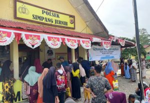 “Hari ini, kami menggelar kegiatan gerakan pangan murah yang berkolaborasi dengan Polres Aceh Timur dan Perum Bulog Cabang Langsa dengan mendistribusikan beras SPHP kepada masyarakat umum,” ujar Kapolsek Simpang Jernih Ipda Safwadinur, S.H.,M.H.