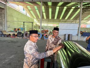 LHOKSEUMAWE – Anggota DPD RI asal Aceh, H. Sudirman atau Haji Uma, melakukan kunjungan ke Pabrik Khamarama Trust di kawasan Batuphat, Kota Lhokseumawe, Pabrik tersebut memproduksi berbagai bahan konstruksi seperti spandek, besi hollow, baja ringan, kanal C, puring, dan genteng metal, dengan tenaga kerja lokal mencapai lebih dari seratus orang.