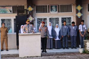 Dalam kegiatan itu, Kapolres bertindak sebagai pembina upacara dan memberikan pembinaan langsung kepada siswa-siswi, didampingi personel Satuan Binmas Polres Aceh Tengah.