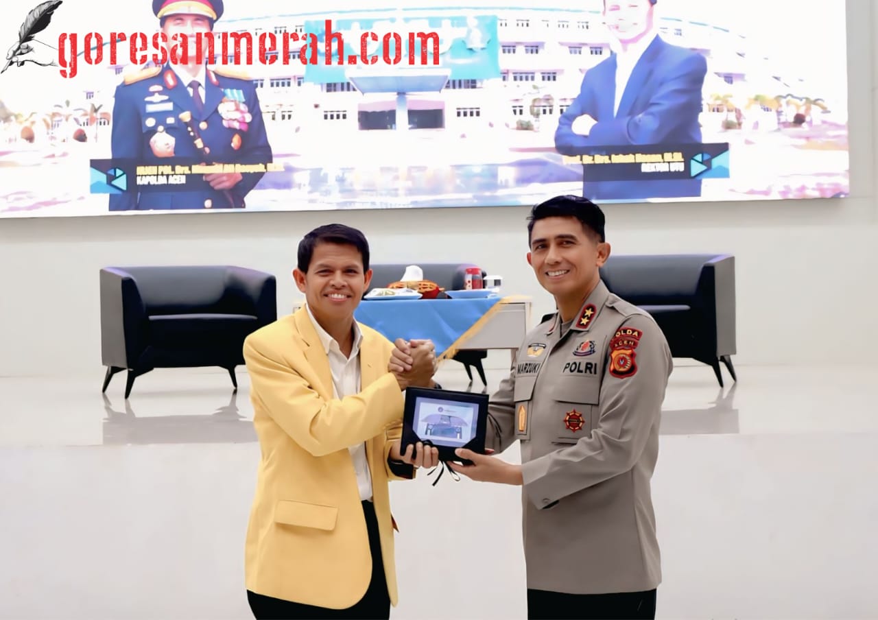 GORESANMERAH.COM | ACEH BARAT – Kapolda Aceh Irjen Pol. Drs. Marzuki Ali Basyah menjadi narasumber dalam Kuliah Umum se-Barat Selatan Aceh yang digelar di Auditorium Universitas Teuku Umar (UTU), Kecamatan Meureubo, Kabupaten Aceh Barat, Rabu, 5 November 2025.