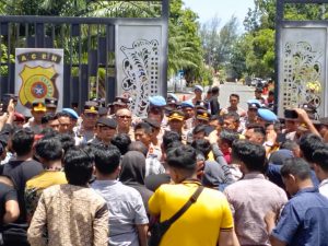 GORESANMERAH.COM | BANDA ACEH – Kapolda Aceh Brigjen Pol Drs. Marzuki Ali Basyah, M.M., menyampaikan apresiasi kepada mahasiswa yang tergabung dalam Gerakan Solidaritas Rakyat Aceh karena telah menyampaikan aspirasi secara tertib dan damai di depan Mapolda Aceh, Jumat, 29 Agustus 2025.
