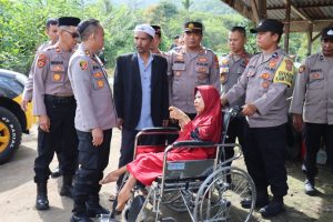 Dengan penuh empati, Kapolres mengawali kunjungan door to door ke rumah warga yang sedang sakit menahun. Salah satunya adalah Sdri. Saliam (45), penyandang disabilitas sejak lahir yang kini harus menjalani hidup di atas kursi roda. Ia tinggal bersama abang kandungnya setelah kedua orang tuanya meninggal dunia.