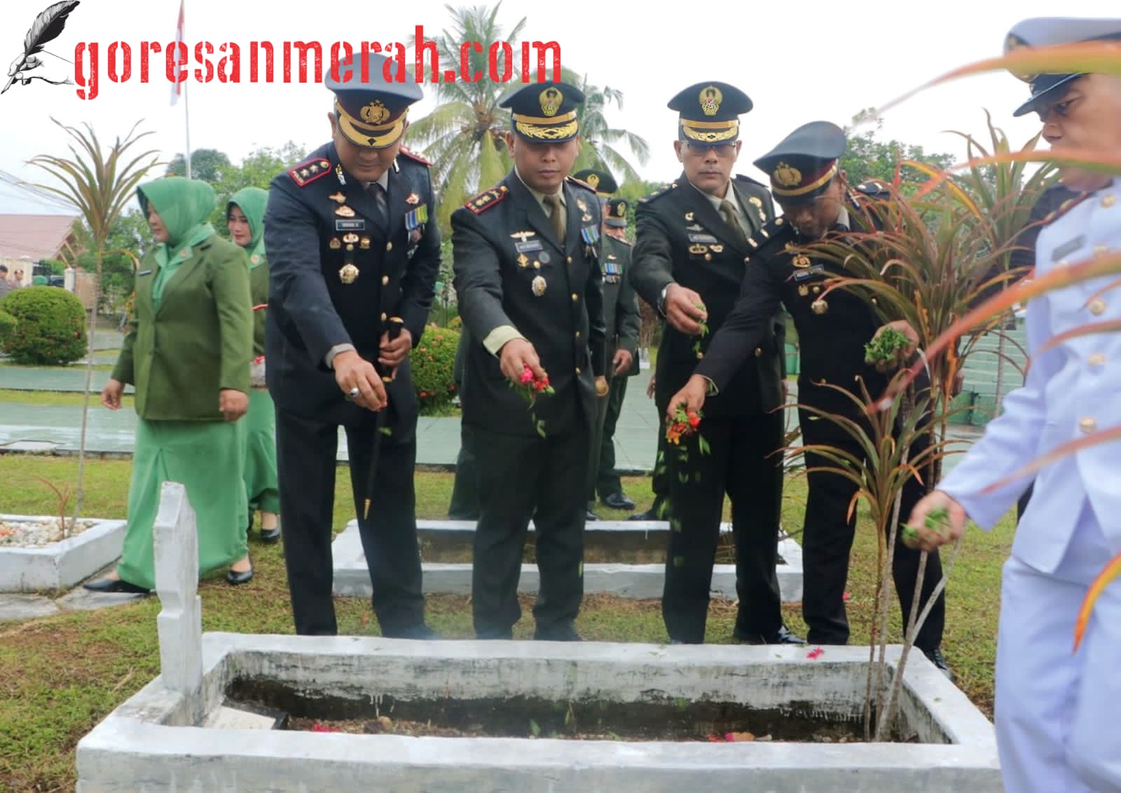 GORESANMERAH.COM | LANGSA ACEH – Dalam rangka memperingati Hari Ulang Tahun Ke-80 Tentara Nasional Indonesia (TNI) Tahun 2025, Kapolres Aceh Timur AKBP Irwan Kurniadi, S.I.K. menghadiri Upacara Ziarah Nasional dan Tabur Bunga yang digelar di Taman Makam Pahlawan (TMP Jalan PTP Gampong Paya Bujok Seulemak, Kecamatan Langsa Baro, Kota Langsa, pada Jumat (03/10/2025) pagi.