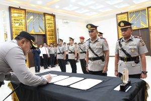 GORESANMERAH.COM | ACEH TIMUR – Kapolres Aceh Timur, Polda Aceh, AKBP Irwan Kurniadi, S.I.K. memimpin pelaksanaan serahterima jabatan Kasat Intelkam, Kapolsek dan pelantikan jabatan Kasat Reskrim bertempat di Aula Bhara Daksa, Senin, (03/11/2025) pagi.