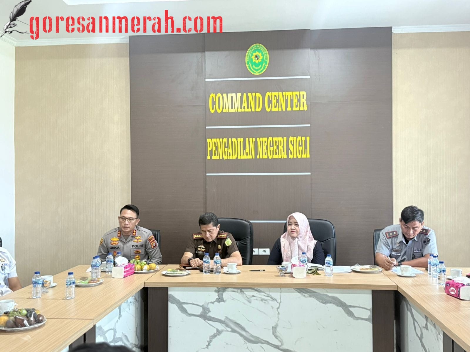 SIGLI – Kapolres Pidie AKBP Jaka Mulyana, SIK, MIK menghadiri kegiatan Coffee Morning dan Rapat Koordinasi tentang Sistem Peradilan Pidana Terpadu Tahun 2025, yang digelar di Ruang Command Center Pengadilan Negeri Sigli, Selasa (21/10/2025) pagi.