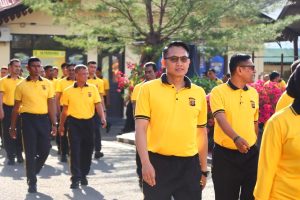 GORESANMERAH.COM | PIDIE – Kapolres Pidie AKBP Jaka Mulyana, S.I.K., M.I.K. memimpin apel pagi yang dilanjutkan dengan kegiatan olahraga umum bersama seluruh personel di Mapolres Pidie, jumat (29/8/2025)