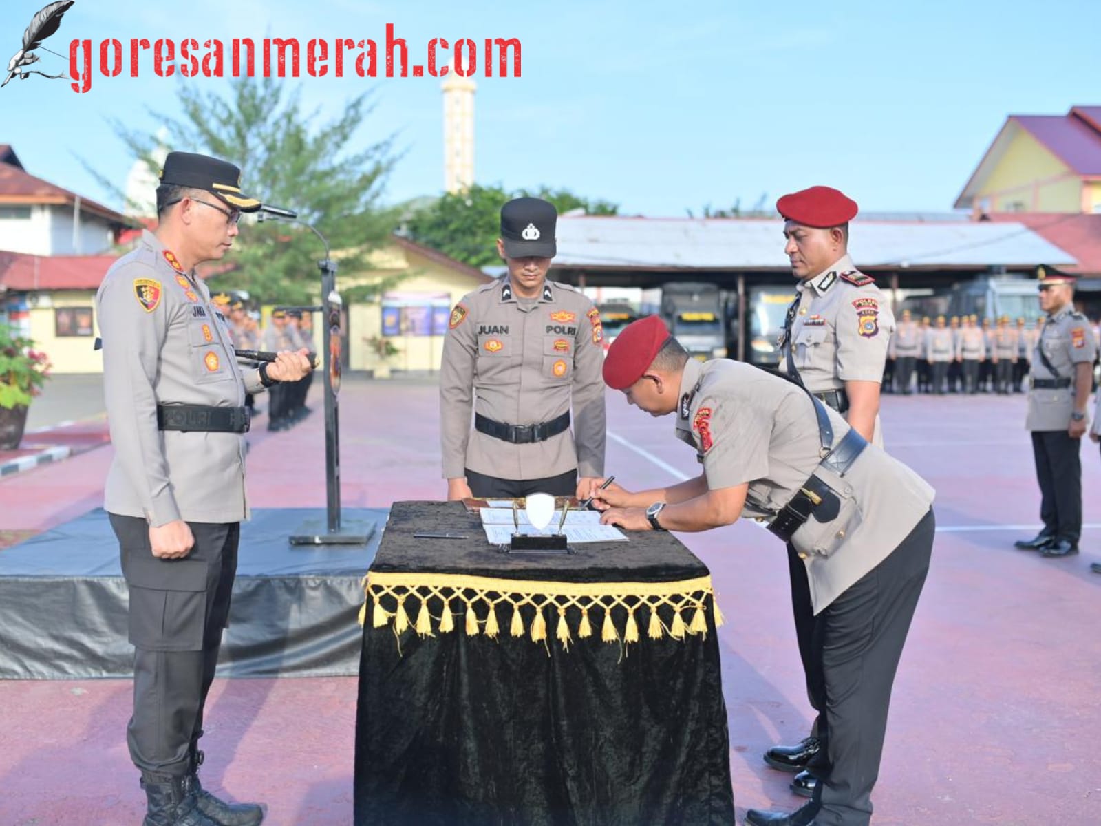 SIGLI – Kapolres Pidie AKBP Jaka Mulyana, SIK, MIK memimpin upacara serah terima jabatan (Sertijab) Kasat Resnarkoba dan Kapolsek Jajaran, Acara serah terima jabatan dilaksanakan di lapangan apel Mapolres Pidie, selasa (28/10/2025).
