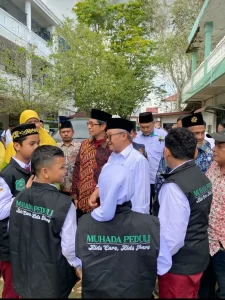 GORESANMERAH | KOTA LANGSA — SD 2 Muhammadiyah Kota Langsa mendapat kehormatan istimewa dengan kunjungan Menteri Pendidikan Dasar dan Menengah Republik Indonesia, Prof. Dr. Abdul Mu’ti, M.Ed., yang didampingi Wali Kota Langsa Jeffry Sentana S. Putra, di tengah kondisi banjir yang masih melanda sejumlah wilayah di Aceh, khususnya Kota Langsa, Senin (5/1/2025).