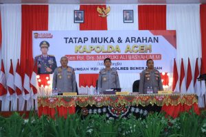 GORESANMERAH.COM | BENER MERIAH – Kapolda Aceh Irjen Pol. Drs. Marzuki Ali Basyah melakukan kunjungan kerja (kunker) di Polres Bener Meriah, Senin, 17 November 2025. Kedatangan Kapolda disambut Kapolres Bener Meriah AKBP Aris Cai Dwi Susanto, Forkopimda Bener Meriah, Ketua Bhayangkari Cabang Bener Meriah, serta seluruh personel Polres Bener Meriah.