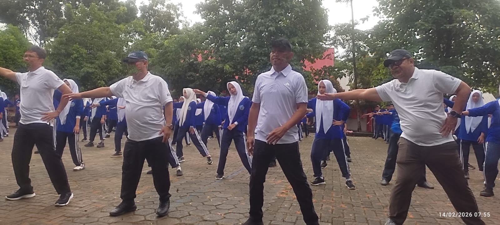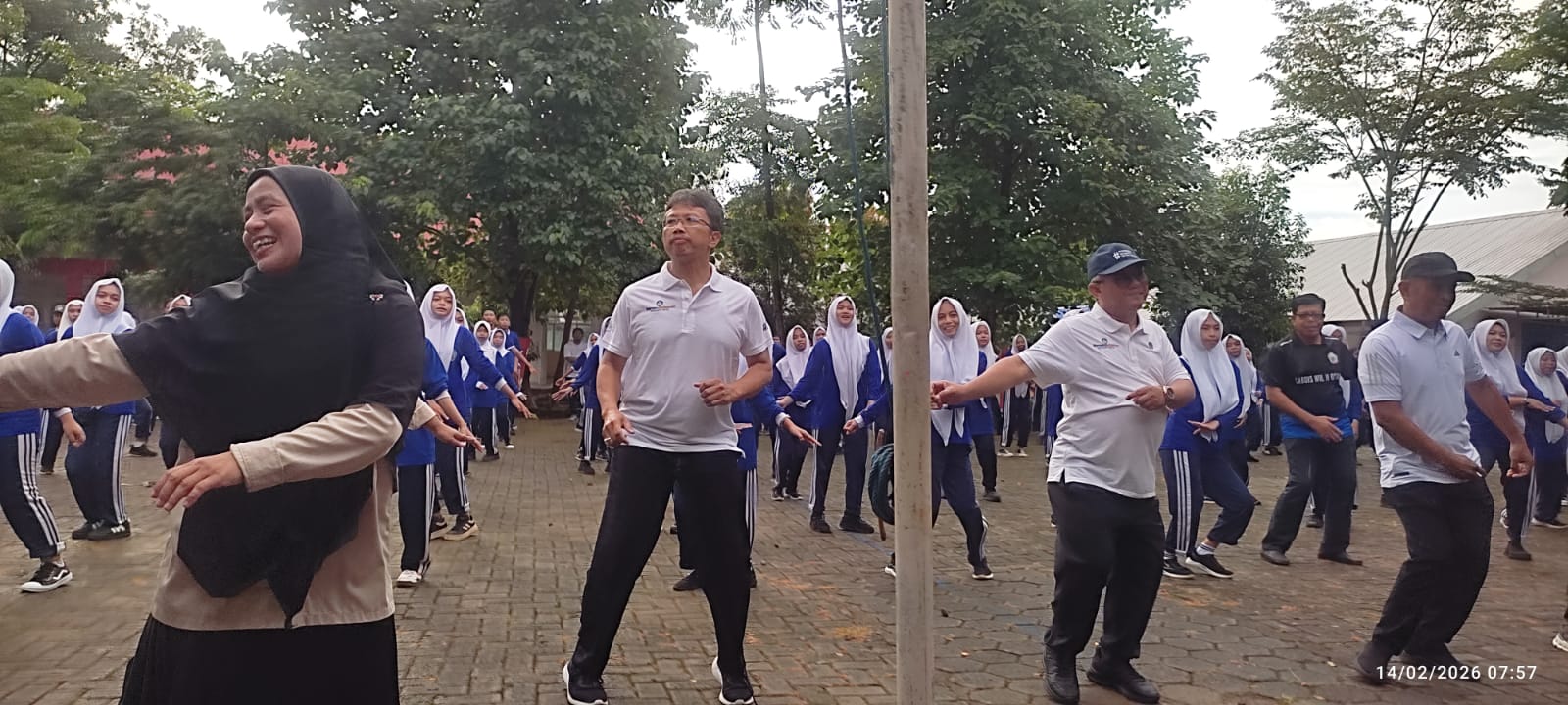 Setelah senam bersama, Menteri mengadakan sesi tanya jawab dengan para siswa, menyapa guru dan staf sekolah, serta menyerahkan bantuan peningkatan mutu pendidikan sebesar Rp25 juta kepada pihak sekolah.