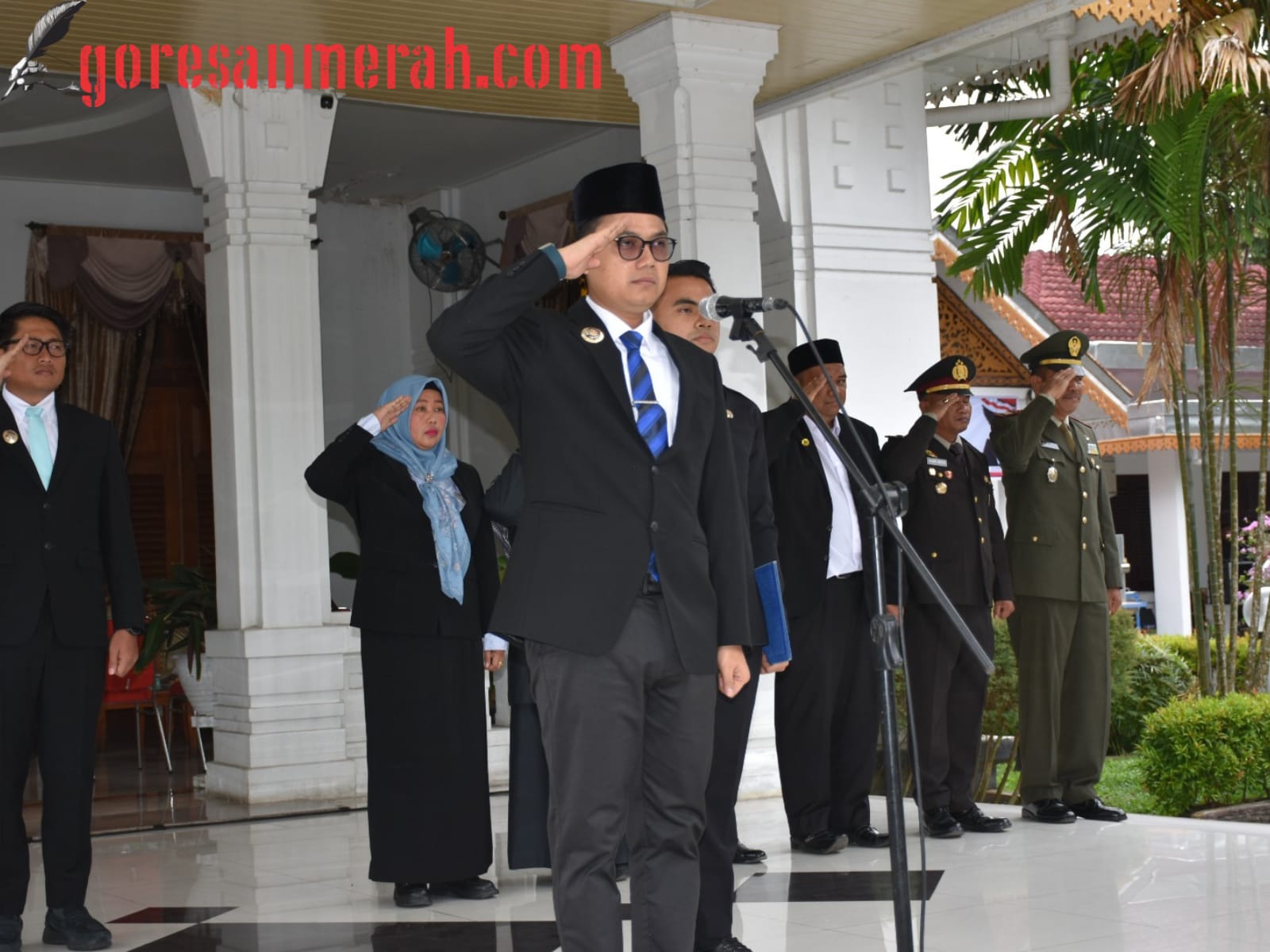 Bertindak sebagai Inspektur Upacara Walikota Langsa Jeffry Sentana S Putra, SE, dan Komandan Upacara Pasiter Kodim 0104/Aceh Timur Lettu Kavaleri Muhammad Irwan, di Halaman Pendopo Walikota Langsa, Rabu 1 Oktober 2025.
